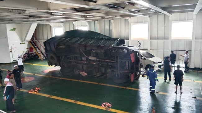 "Truk terguling menimpa dua mobil. Kapal sudah sandar di Gilimanuk pada pukul 14.53 Wita," ungkap Komandan Pos Angkatan Laut (Danposal) Gilimanuk, Letda Laut (P) Bayu Primanto, saat dikonfirmasi detikBali, Selasa.