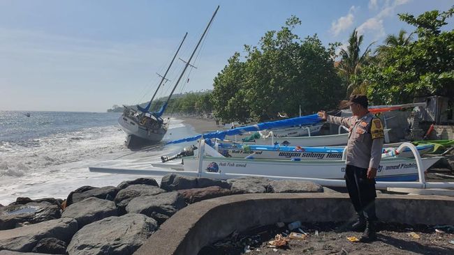 Sebuah kapal layar yang mengangkut delapan anak buah kapal (ABK) terdampar di perairan Amed, Desa Purwakerti, Kecamatan Abang, Karangasem, Bali. Diketahui, kapal layar tersebut dinakhodai oleh Timothy Robert (62) asal Inggris.