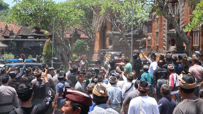 Dua kelompok massa di Desa Adat Bugbug, Karangasem, Bali, kembali bersitegang pada Senin (13/10/2025). Aksi saling dorong sempat terjadi sebelum akhirnya berhasil dilerai oleh polisi.