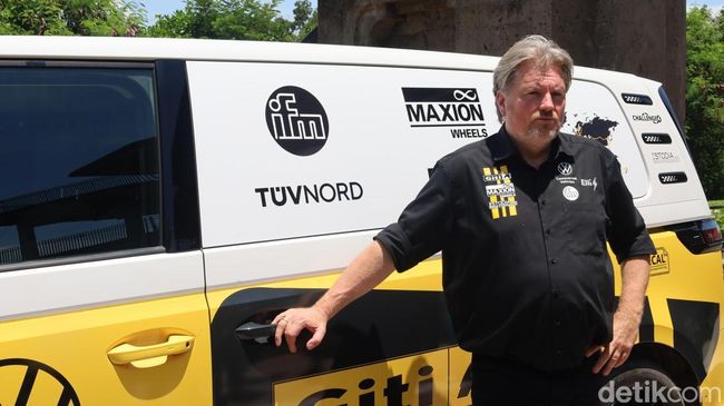 Rainer Zietlow akhirnya tiba di Bali setelah mengendarai mobil listrik dari bengkel resmi Volkswagen (VW) di Hannover, Jerman. Butuh waktu sekitar lima bulan menyetir mobil hingga akhirnya dia menginjakkan kaki di Indonesia.