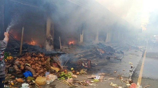 Bertepatan Hari Raya Galungan, Pasar Menanga di Kecamatan Rendang, Karangasem, terbakar hebat, Rabu (19/11/2025) siang. Sebanyak 12 kios pedagang hangus dilalap si jago merah.