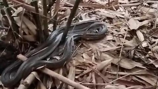 Petugas Yayasan Reptil Asih Tabanan menemukan ular dan telurnya di bawah dahan bambu dan tertutup daun kering. Petugas juga menemukan 33 telur di sarangnya.