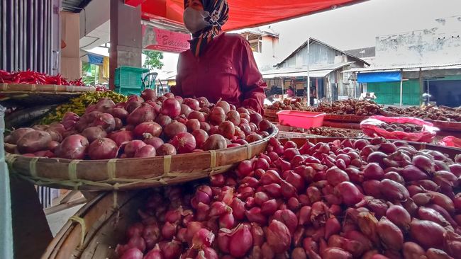 Hari ini, harga cabai merah besar dan bawang merah turun. Harga cabai merah sebelumnya Rp 48.400 turun menjadi Rp 40.000 per kilogram. Harga bawang merah sebelumnya Rp 26.750 turun menjadi Rp 25.250 per kilogram.