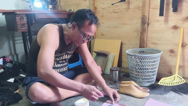 "Kalau dulu saya punya tukang empat, sekarang saya garap sendiri, karena memang orderan belum banyak. Pernah pas PKB dulu omzet sampai Rp 150 juta, sekarang mana dapat," ucap Sudiana ditemui detikBali di bengkel pembuatan sandal di rumahnya, di Desa Adat Tuban, Kecamatan Kuta, Badung, Minggu (11/2/2023).