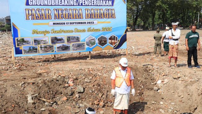 Bupati Jembrana I Nengah Tamba secara resmi memulai pembangunan gedung baru Pasar Umum Negara (PUN) pada Minggu (17/9/2023). Peresmian ditandai dengan prosesi Pengeruakan (upacara memulai pembangunan baru) atau peletakan batu pertama.
