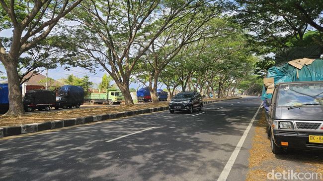 Pantauan detikBali, Senin pagi (9/10/2023) truk dan pikap yang parkir di pinggir Jalan Bypass Ngurah Rai itu tampak sudah lama dan berdebu. Bahkan, ada mobil yang bannya sampai kempes lantaran parkir terlalu lama.