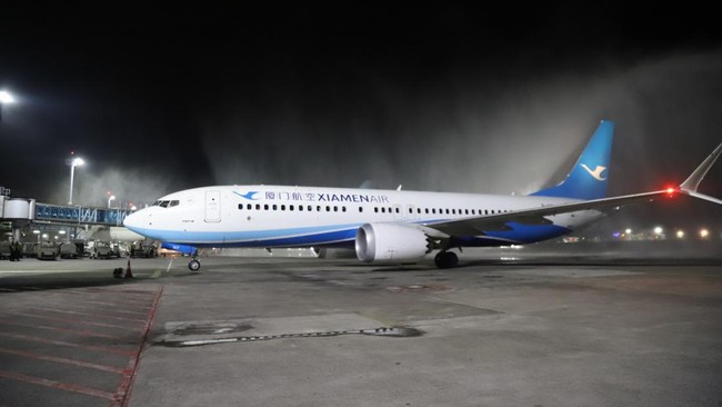 Xiamen Air mendarat perdana di Bandara Internasional I Gusti Ngurah Rai, Bali, Minggu dini hari (17/12/2023). Pesawat Boeing 737-800 itu membawa 167 penumpang dari Fuzhou, Cina, dan kembali terbang ke negeri Tirai Bambu dengan membawa 177 penumpang.