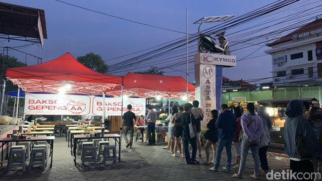 Lapak Bakso Gepeng AA di Jalan Teuku Umar Barat, Denpasar, Bali, viral di media sosial (medsos). Antrean pembeli yang ingin mencicipi bakso tersebut kerap mengular.