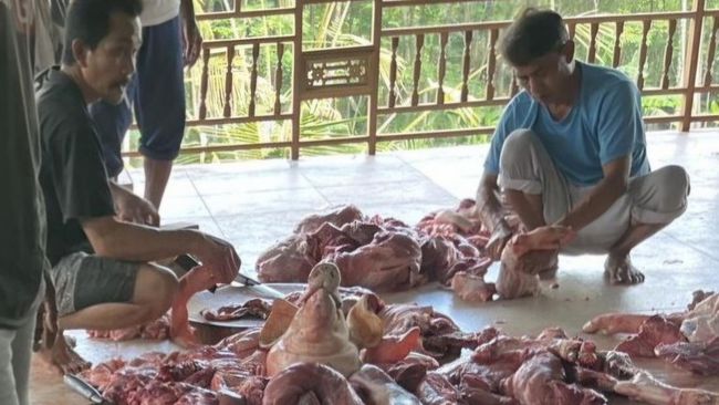 Penampahan Kuningan (sehari menjelang Hari Raya Kuningan) penjualan daging babi dan ayam naik di Pasar Galiran, Klungkung, Bali. Bahkan harga daging babi melonjak drastis dari normalnya Rp 80 ribu per kilogram (kg) menjadi Rp 110 ribu pada Jumat (4/10/2024).