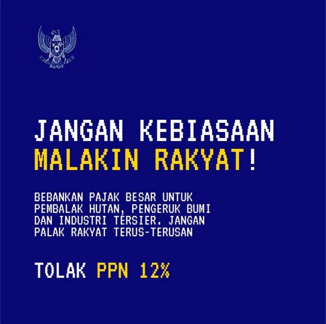 Seruan terkait penolakan PPN 12% pada 2025 dengan latar biru dan terdapat lambang Garuda menggema di media sosial. Kepala Biro Komunikasi dan Layanan Informasi Kementerian Keuangan (Kemenkeu), Deni Surjantoro, buka suara terkait penolakan tersebut.