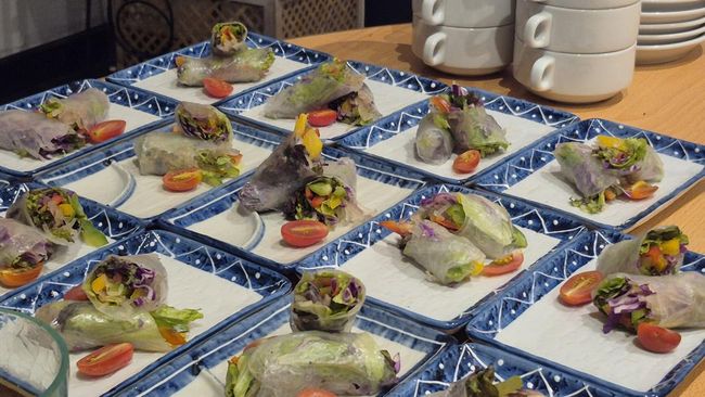 detikBali berkesempatan mencicipi sup labu yang digarami garam rumput laut dan spring roll dengan isian bihun rumput laut. Garam rumput laut terasa asin dan gurih sekaligus. Ini meningkatkan kompleksitas rasa sup labu yang tadinya hanya terasa manis.