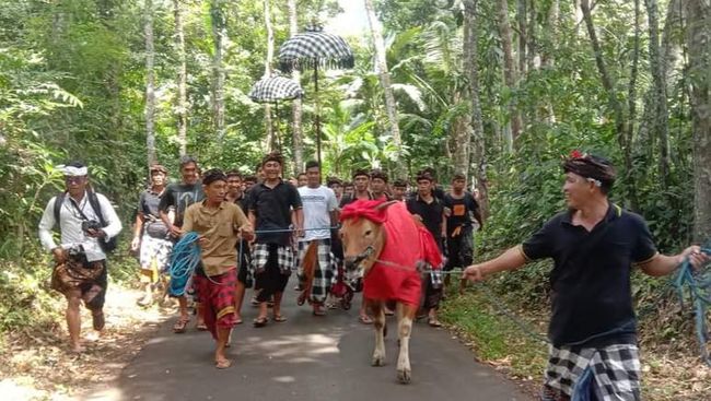 Usai menjalani penyucian dengan beberapa ritual, sapi tersebut diberi nama Jero Gede. Saat tilem sasih kedasa, sapi atau Jero Gede tersebut akan dibawa menuju Pura Kahyangan Tiga untuk prosesi matur piuning (mohon doa restu) supaya ritual dapat berjalan lancer tanpa hambatan.