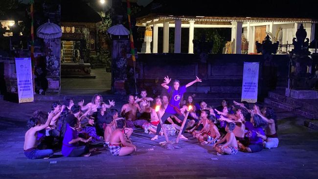 Setelah melalui serangkaian kegiatan napak tilas ke situs suci, berbagi metode dan latihan di sesi Laboratorium Seni, sarasehan dan diskusi serta FGD, pada hari ke-4 Temu Seni Tari, 18 koreografer berkesempatan merasakan langsung pengalaman terlibat dalam produksi tari kecak, sebuah karya seni epik Bali yang begitu terkenal.
