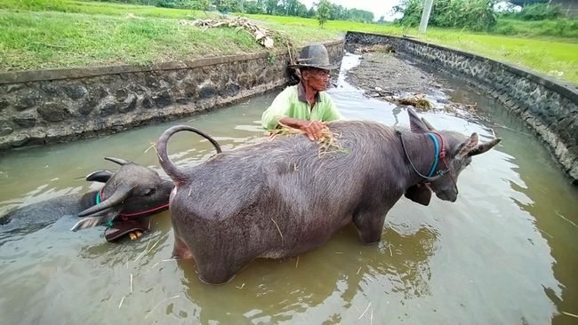 "Kalau merawat kerbau saya sudah dari kecil. Sudah biasa bergaul dengan kerbau seperti keluarga," kata Sampun saat ditemui di rumahnya, Sabtu (20/8/2022).