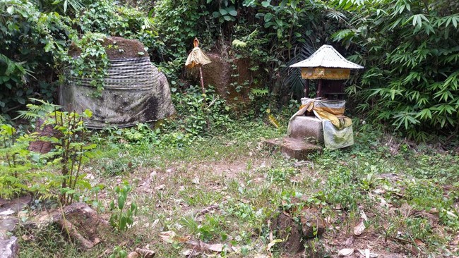 Singkat cerita, ketika sampai di lokasi aura magis seketika menyelimuti tempat itu. Terdengar suara burung samar-samar disertai dengan suara gesekan dedauan. Terlihat di lokasi ada satu pelinggih dan sebuah batu yang diselimuti kain poleng. Serta berupa pondasi dari pelinggih yang konon dipercaya masyarakat sudah ada sejak zaman kerajaan.