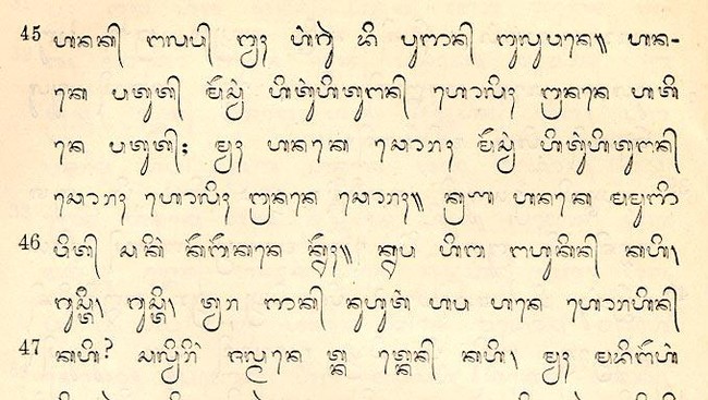 - Apabila aksara Na dibubuhi gantungan, maka aksara tersebut dibaca sebagai /n/, tanpa ada huruf vokal -a lagi.