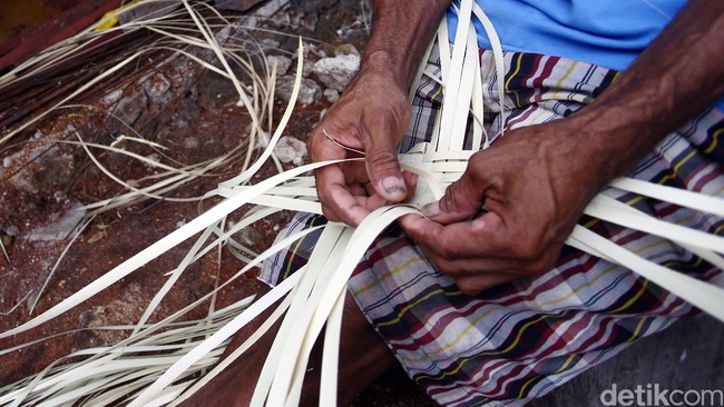 - Petik daun-daun dari pohon siwalan atau pohon tal. Kegiatan ini biasanya dilakukan di bulan Maret-April dan September-Oktober karena di masa-masa itulah, daun sudah menua.