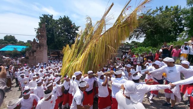 "Hanya bagian punggungnya saja, sedangkan bagian bawah dibiarkan mentah. Sehingga babi tersebut memiliki tiga warna (Tridatu), yakni merah/bagian matang, hitam/bagian yang masih ada bulunya, dan putih/bagian yang masih mentah dan bulunya telah dihilangkan," kata Wayan Sunarsa ditemui seusai tradisi berlangsung, pada Kamis (6/4/2023).