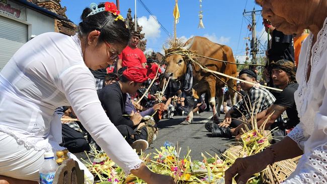 Klungkung - Tradisi mecaru mejaga-jaga kembali digelar di Klungkung, Bali. Bertujuan untuk menjaga keharmonisan hingga kesuburan di desa. Seperti apa?