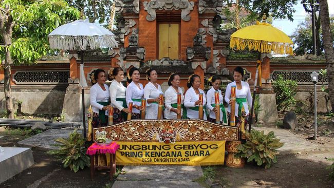 "Bungbung Gebyog di Desa Dangin Tukadaya ini berdiri sekitar tahun 1975. Kesenian ini dulu sering dimainkan untuk rasa syukur setelah panen raya oleh ibu-ibu," ungkap I Gusti Ketut Rai Astawa, salah satu pegiat seni Bungbung Gebyog di Jembrana, saat dikonfirmasi detikBali, Sabtu (4/5/2024).