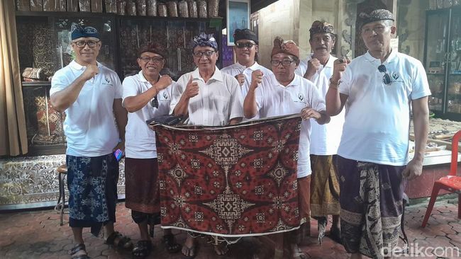 Para pentolan dan pendiri Yayasan Agung Jaya Mandiri mengunjungi dua tokoh pelestarian lontar dan tenun ikat gringsing di Karangasem, Selasa (6/8/2024). Mereka adalah I Nengah Suarya, pengelola Museum Lontar di Desa Dukuh Penaban, dan I Wayan Yasa, seniman dan perajin kain tenun ikat gringsing di Desa Tenganan, Karangasem. Selain memberikan penghargaan, yayasan juga memberikan bantuan.