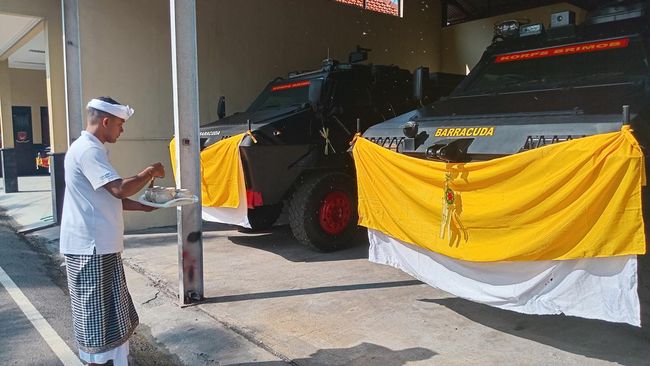 Pantauan detikBali, sejumlah orang terlihat telah melakukan upacara piodalan Tumpek Landep pukul 08.00 Wita di pura Mako Brimob Polda Bali. Di sana juga terlihat sejumlah kendaraan dinas berupa bus, truk angkut penumpang, mobil patroli, dan mobil lapis baja yang terpasang kain putih kuning, dan sarana upacara lain.