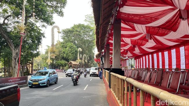 Pantauan detikBali di lokasi, panitia sibuk memasang sarung kursi di panggung tamu VIP. Panggung tersebut nantinya akan diisi para pejabat nasional seperti menteri, kepala daerah, hingga anggota dewan.