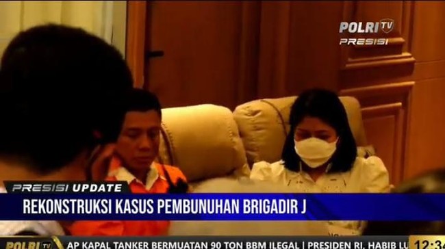 Ferdy Sambo dan istrinya dihadirkan dalam rekonstruksi di rumah pribadinya, Jalan Saguling, Jakarta Selatan. Mantan Kadiv Propam tersebut, terlihat memakai baju tahanan, sementara Putri Candrawathi memakai baju berwarna putih. Foto: Tangkapan layar