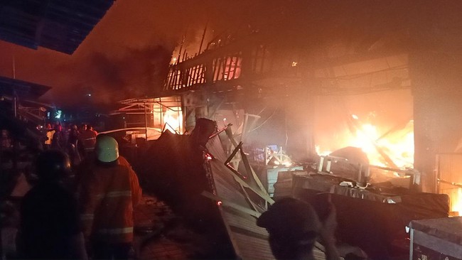 Jembrana - Kebakaran melanda Pasar Adat Lelateng, Kecamatan Negara, Jembrana, Bali, Sabtu (4/2/2023) malam. Api dilaporkan muncul pertama kali sekitar pukul 21.00 Wita.