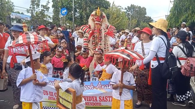 Jembrana - Menyambut Hari Raya Nyepi Caka 1945, sebanyak 42 ogoh-ogoh mini ditampilkan dalam parade Ogoh-ogoh TK/Paud Se-Kabupaten Jembrana, Bali. Begini kemeriahannya.