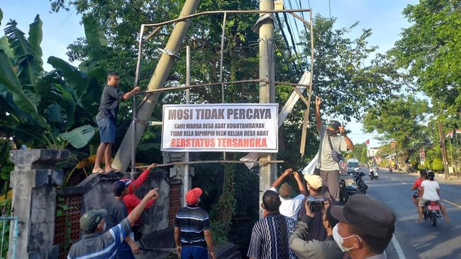 "Kami mohon pengertiannya lah kepada Jero Kelian Desa untuk sementara agar mundur dulu. Aksi kami ini spontanitas karena masyarakat mendengar beliau jadi tersangka," katanya.