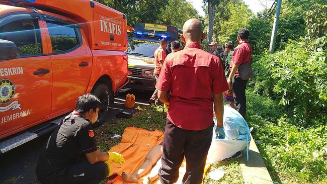 Usai ditemukan warga, pihak kepolisian dan tim medis langsung melakukan pemeriksaan mayat wanita yang ditemukan dalam posisi duduk bersandar di Jalan Denpasar-Gilimanuk, kawasan Melaya, Jembrana