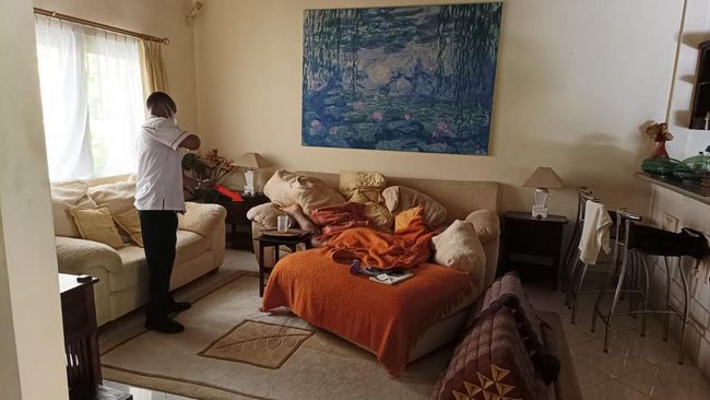 Setiba di TKP, kedua saksi langsung masuk ruangan melalui pintu depan karena kondisi pintu depan korban tidak terkunci.