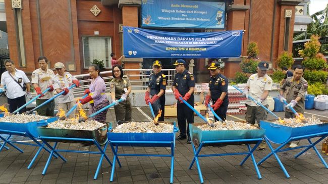 "Dari Kanwil Bea Cukai Bali, NTT, dan NTB, mengadakan pemusnahan barang-barang kena cukai. Ini merupakan suatu sinergi yang sangat bagus yang kami lakukan dan akan dicoba untuk selalu meningkatkan dalam rangka perbaikan ke depannya," kata Puguh kepada wartawan, Kamis (22/12/2022).