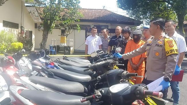I Komang Arimbawa (41) dibekuk jajaran Sat Reskrim Polres Jembrana lantaran mencuri sepeda motor di empat kabupaten di Bali. Polisi juga mengamankan sebanyak 28 unit sepeda motor.