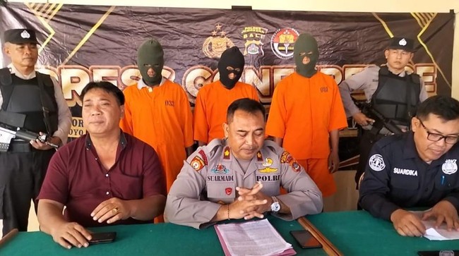 Kedua pelaku bernama Komang Ari Wiweka Anda alias Tu Geguk (31) dan Gede Astika Negara alias Deglug (49). Mereka sama-sama berasal dari Banjar Pasar, tak jauh dari tempat kejadian perkara (TKP). Mereka berhasil ditangkap setelah dijebak oleh satpam perusahaan.