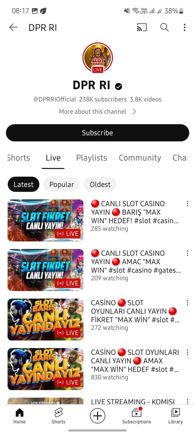 Jakarta - Akun YouTube official milik DPR RI diretas hacker. Akun tersebut menayangkan video live streaming judi slot.