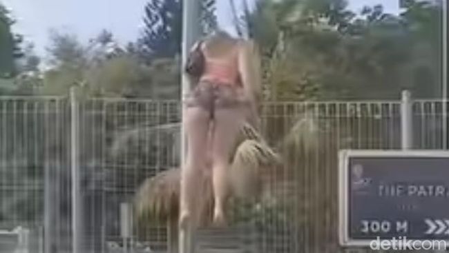 Seorang perempuan warga negara asing (WNA) memanjat pagar pembatas median jalan di Bandara I Gusti Ngurah Rai, Bali, viral di media sosial. Aksi bule itu terekam kamera pengendara yang melintas.