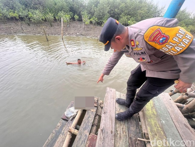 "Kemarin (Kamis) kan pas air surut ada anak-anak cari ikan. Kemudian salah satu anak memberitahukan kepada salah satu warga," kata salah seorang warga sekitar, AR, Jumat (8/12/2023).