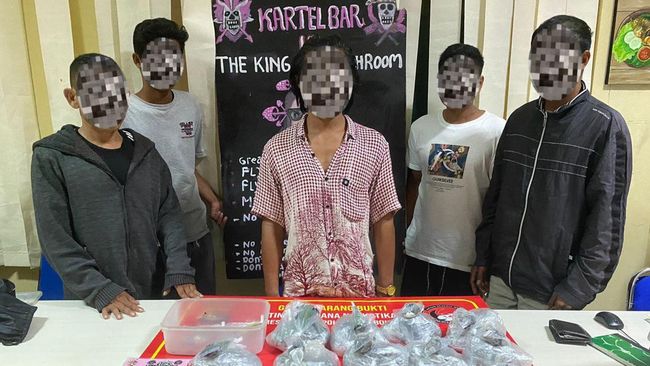 Kasat Resnarkoba Polres Lombok Utara Iptu I Putu Sastrawan mengungkapkan kelima pengedar magic mushroom itu berinisial S (31), P (32), S (23), W (32), dan J. Mereka ditangkap di dua lokasi yang berbeda pada Minggu (6/5/2024).