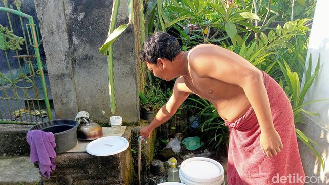 "Sempat ada warga lain ingin bikin sumur bor. Dalamnya kemungkinan 225-250 meter itu supaya bisa (keluar air), tapi kan biayanya tinggi. Memang harus punya bak air. Rata-rata tiap rumah di sini, cek saja, pasti punya," tuturnya.