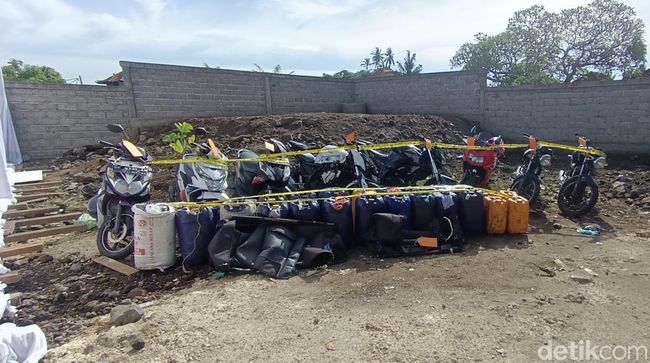 Polisi menyita delapan motor, 15 jeriken berukuran 35 liter, serta selang sepanjang 1,5 meter dan 2 meter.