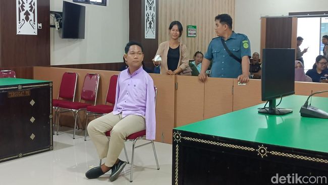 Pantauan detikBali, Agus mengenakan kemeja ungu dan celana panjang krem saat sidang putusan di PN Mataram. Pria tunadaksa yang tidak memiliki tangan itu tampak tidak menunjukkan reaksi berlebihan selama pembacaan putusan.