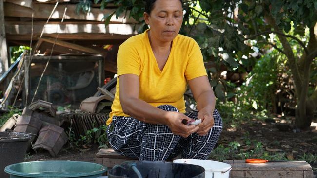 "Dikasih bumbu terus dijemur. Pas dijemur dikasih ketumbar bubuk, biar aromanya segar ya proses jemurnya kalau sinarnya keras 3 hari atau 4 hari kering. Sudah kering siap dah dikemas ya dipasarkan," jelasnya.