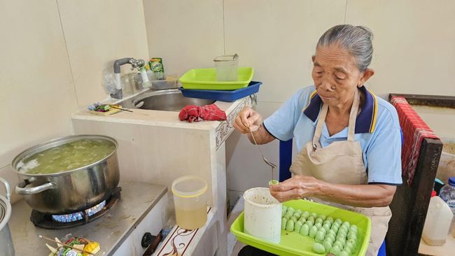 "Kalau ada pesanan bisa lebih banyak lagi. (Usaha klepon) diteruskan dari perintis Desak Rai, yang sudah meninggal beberapa tahun lalu," kata Juliani sambil melayani pembeli.