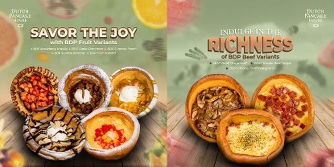 Dutch Pancake House menawarkan berbagai macam pancake, mulai dari pancake klasik dengan topping tradisional hingga pancake kekinian dengan topping yang unik dan inovatif. Beberapa menu andalannya antara lain Triple Cheese, Hot & Sexy Chicken, Smoked Beef Mayo, Chicken Alfredo.