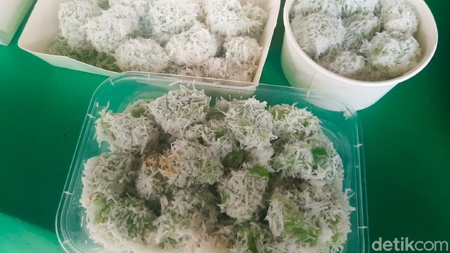 Klepon Gianyar yang lumer dibanderol Rp 52.500 per boks. Bisa diisi klepon saja atau campur dengan kue singkong. Adonan kleponnya sama persis dengan yang detikFood temui di Bali.