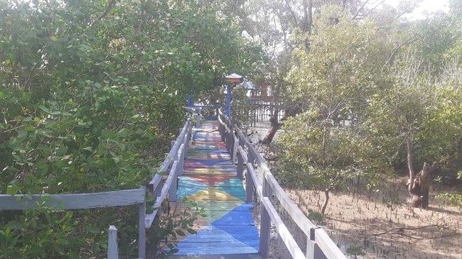 Jembatan papan ini dibuat seperti jalan melingkar di hutan mangrove itu. Ada dua jalur yakni jalur masuk dan keluar. Jembatan papan itu diberi cat warna-warni. Pada jembatan itu, ada juga papan yang lapuk dan rusak. Pada bagian lain juga ada papan yang jatuh akibat badai Seroja beberapa waktu lalu