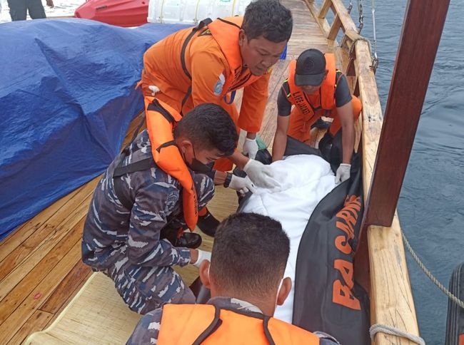 Dua orang wisatawan ditemukan tewas dalam insiden kapal tenggelam di perairan dalam wilayah Taman Nasional Komodo. Labuan Bajo, Manggarai Barat, Nusa Tenggara Timur (NTT), Selasa (28/6/2022). Kapal Wisata Tiana diketahui mengangkut 18 penumpang dan 6 orang ABK.