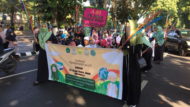 Pengajar di salah satu TK Islam di Kota Mataram itu menyebutkan bahwa karnaval Hijaratul Rasul merupakan yang pertama kali digelar sejak pandemi COVID-19 melanda Kota Mataram.